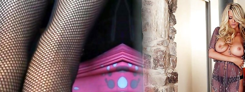 Sex-positive platinum-blonde is covered in a clear wrap in super hot Bondage & Discipline gig