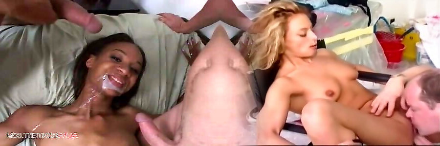 Milky nymph gang-fucked rock hard by dark-hued cocks