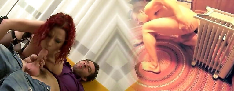 Euro granny redhead taunts the camera and the giant dark-hued salami