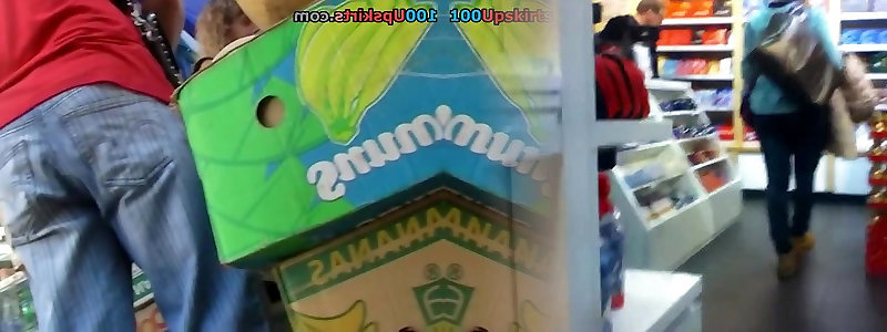Tanned Japanese girl in mini skirt micro thong wedgie.
