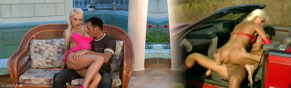 Blonde bombshell fucked by the pool