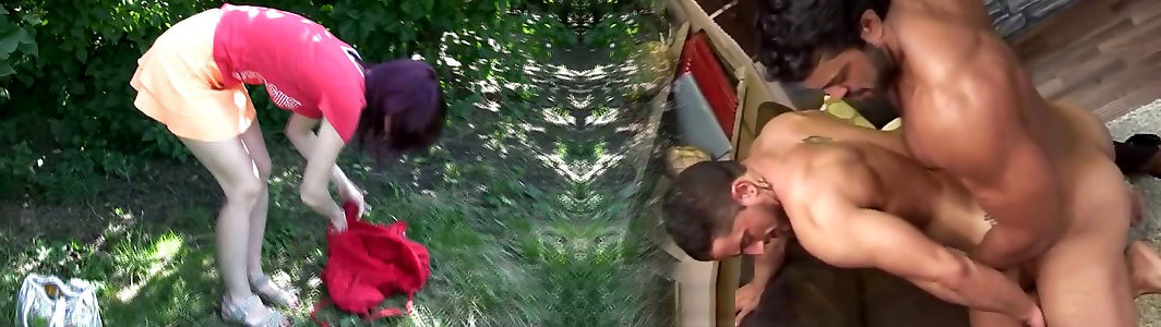 Black-haired urinating and sucking outdoor