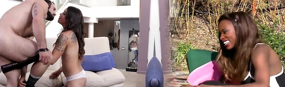 shemale cumdhot Dark-hued takes this ginormous man-meat for a joyride in her taut fuckbox