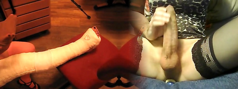 Slow Cock Massage with Footjob in Red Stockings