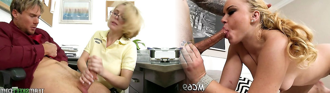 Huge-chested blonde cutie Cent Pax in glasses blows her schoolteachers hardon trouser snake
