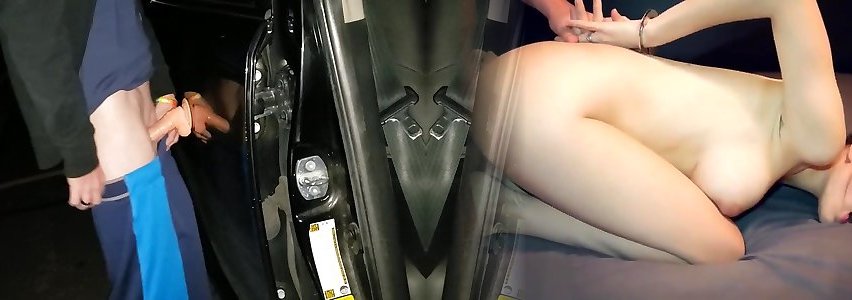 trans man parking pile fake penis ride