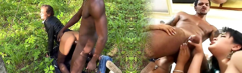 A Black Guy Showed His Cock In The Bushes And Fucked A Schoolgirl At A Tree