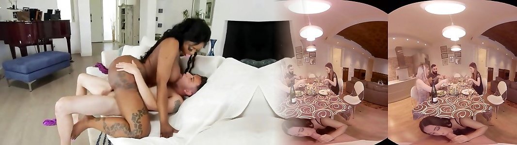 Insatiable dark-hued model Victoria Cakes inhales and rides a giant white pipe