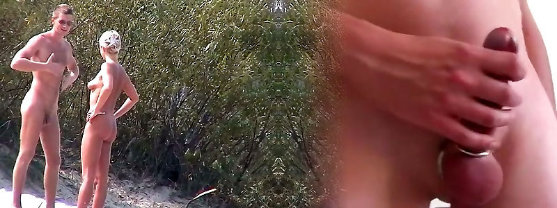Beach hunter voyeurs naturist people on the warm camping