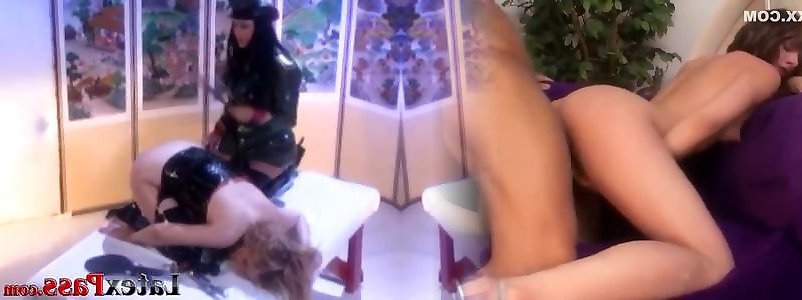 RubberDoll & Condom Painted Damsel Slap Arse Cheeks In Latex