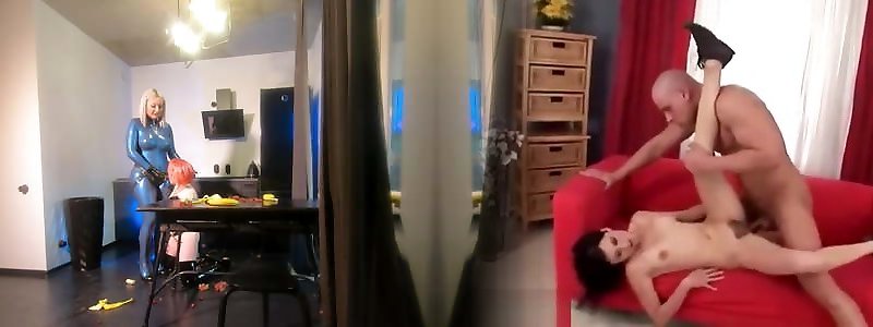 German blonde femdom milf in latex get fucked from slave