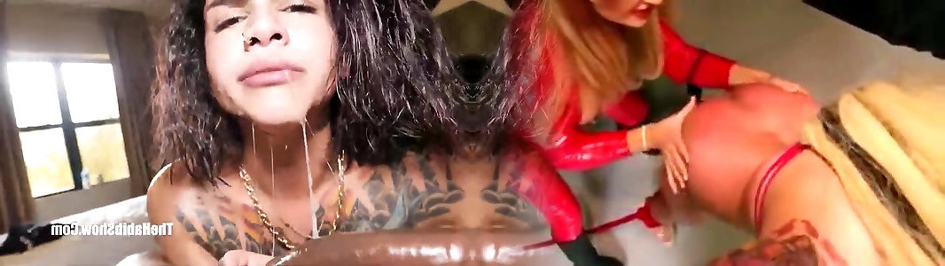 Super-naughty spear fellating bi-otches give gullet and labia massage to Big Black Cock, then get cummed