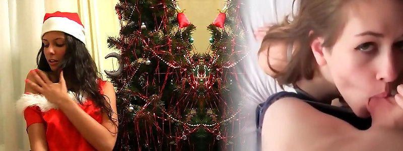 Steamy long haired ultra-cutie in Santas judy nro heads solo and pleases herself