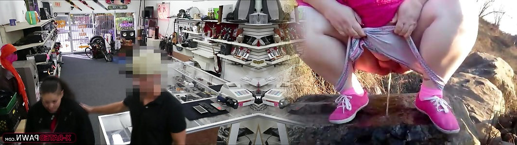 Pawn shop employee gets caught dildo in ass and pussy and has to have group hookup with the mummies with humungous boobs