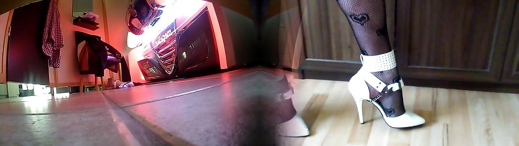 Glamour dancing of white white changing room backside