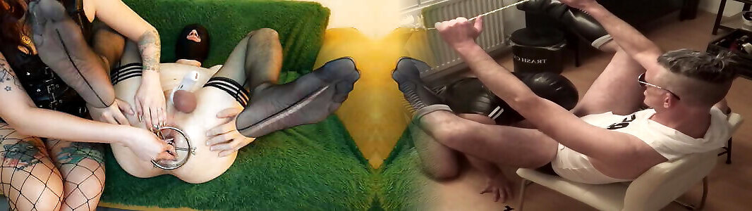 Anal dilator for slave&039;s ass. Amazing view! Dominatrix Nika used the device to expand the anus of a subordinate man wearing a ch