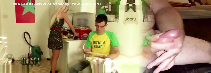 Cleaning lady cleans the house with short shorts, made the boss excited