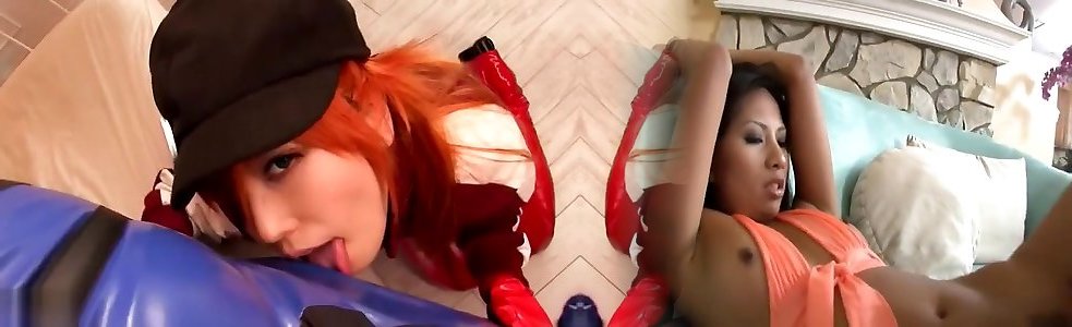 Chika Eiro in long footwear deep-throats fake penis and gets rear end style
