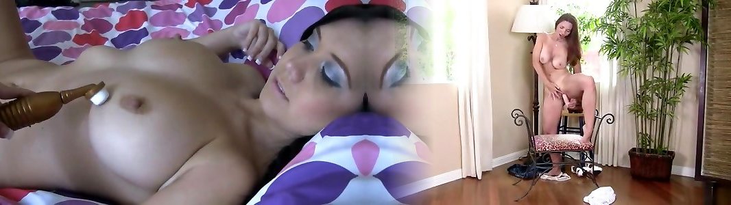 Chrissy Marie gropes her wondrous elastic boobs with a toy
