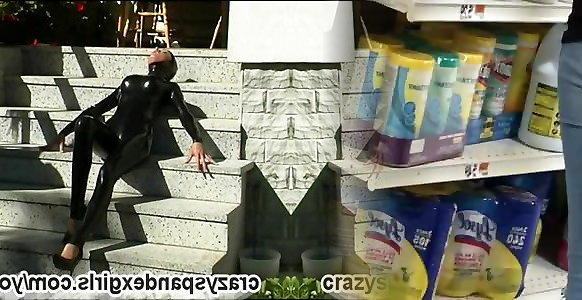 Glamour Sophie disrobes in glossy lycra pin