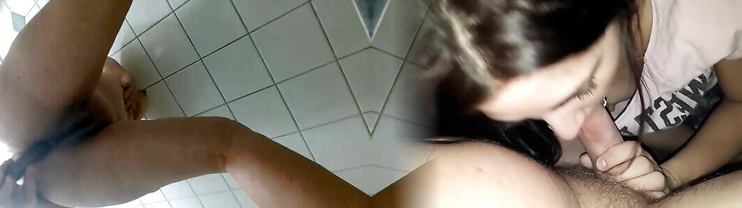 2 fleshy brunettes share a bathroom and 2 yam-sized hard-ons
