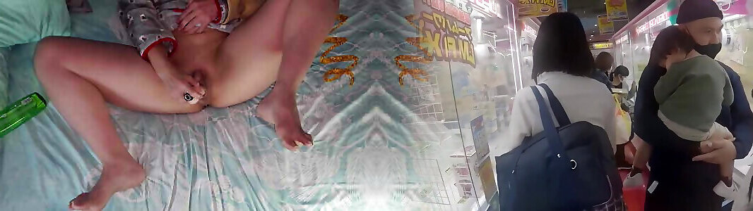 Smallish Asian Bombshell Teases Clit with Bathroom and Fake Penis