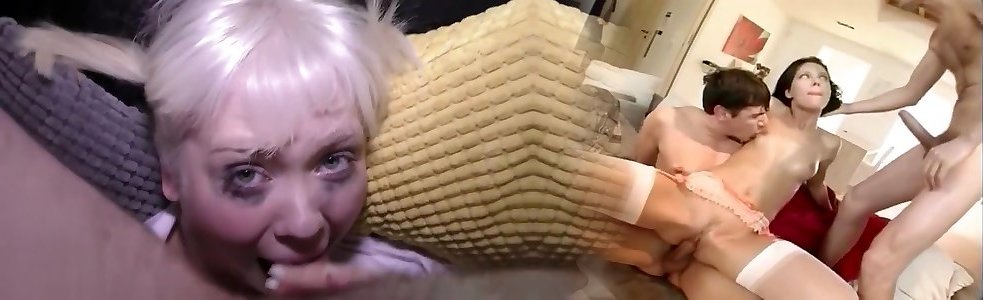 Young blond bombshell takes 2 bulging peckers in her skilled forearms