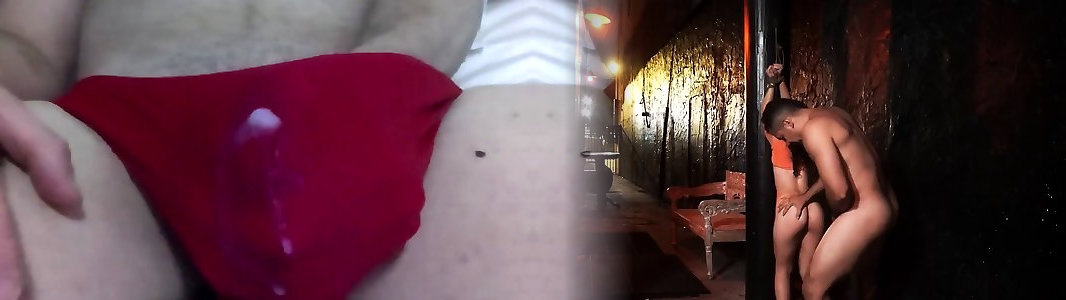 Jizzing on a G-string erection