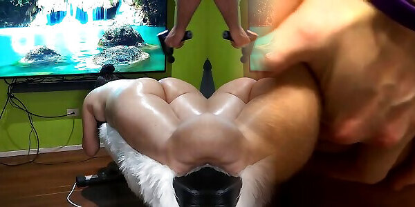 Amateur couple erotic massage with oil. Amateur couple crazy sex in the bedroom.