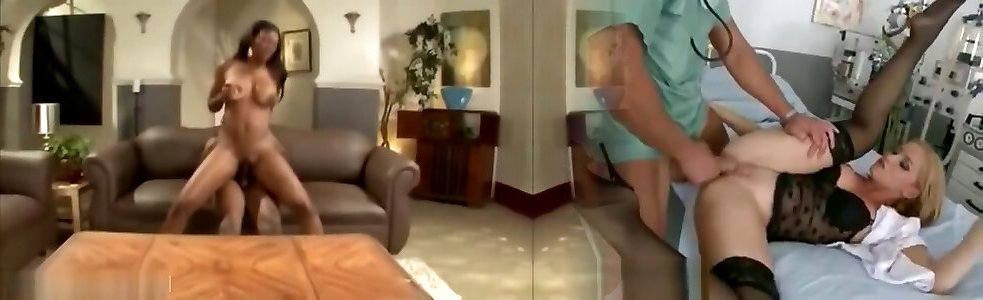 Connie Haris Lays back shemale fucking two milfs gets pounded
