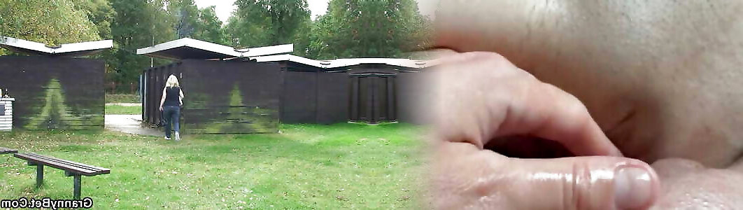 Grannie dogging in the woods, exhibits herself stroking