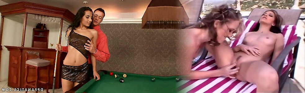 Black-haired Honey Janet Fun Toying Pool with Two Monstrous Cues