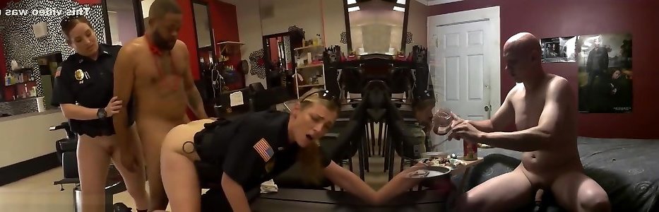 Milf cops barge into barbershop and make mom movie love poke them