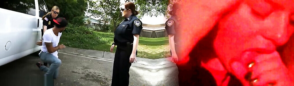 Cougar cops subdue 12 inch white cock bareback against the camper spandex hood into disrobing clothes off
