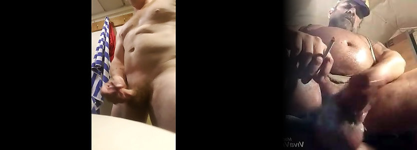 obese hairy man kneading one out