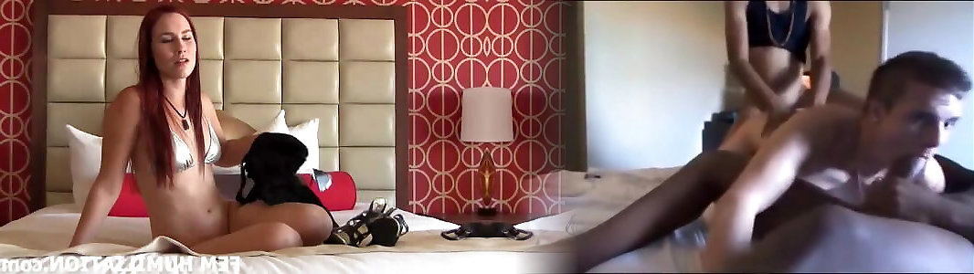 Strict and hard spanking of her husband from a slender beauty.