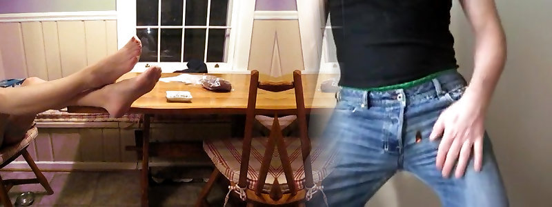 Foot worship for a woman in jeans