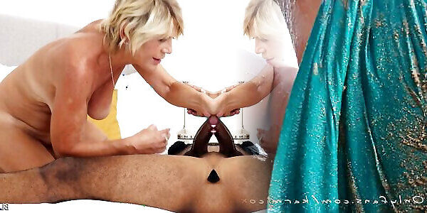 Czech GILF Granny BBC Cum in Mouth and Face Blowjob