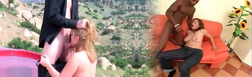 Dark-hued and white sweethearts deepthroating and pummeling a rock hard penis on the stairs