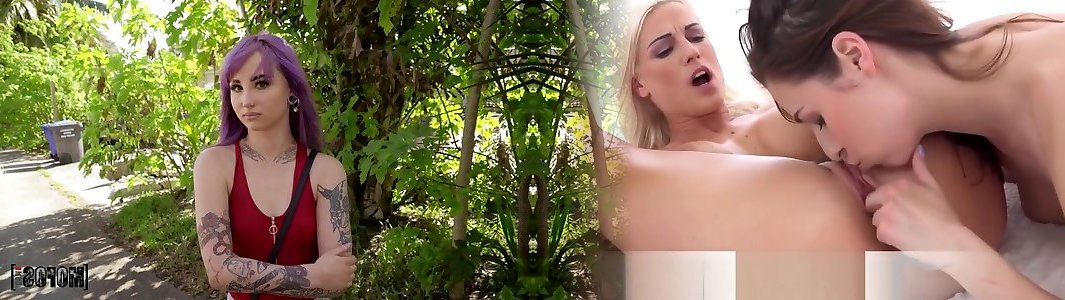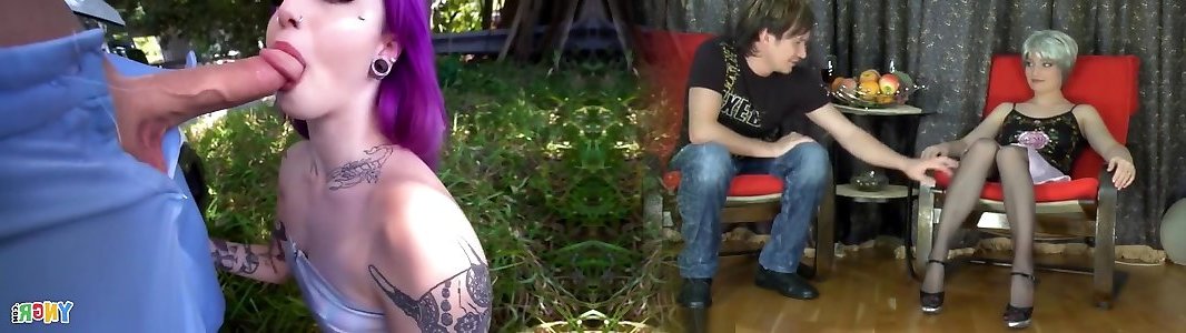 Punk woman with purple hair alten mann Steele is punished with hard pummeling