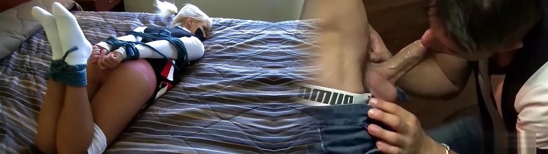 Leo lubed, trussed & spread on Loras sofa with amazon internal ejaculation complete in gash