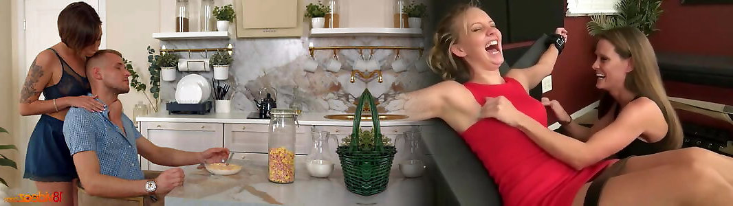 Taboo fucky-fucky with mummy and daughter on white kitchen
