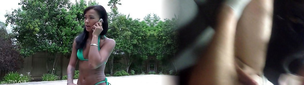 Dark-hued beauty Harley Dean heads naughty on a rock hard black spear