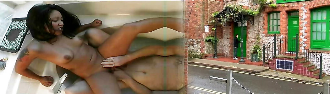 Hot ebony masturbates with a big toy and gets her shaved cunt boned by a black dude