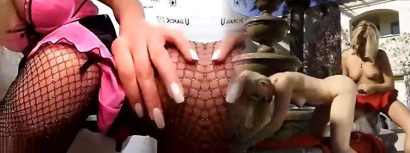 Massive orb blonde drains clean-shaven pussy on maa veatta cium in side outdoors