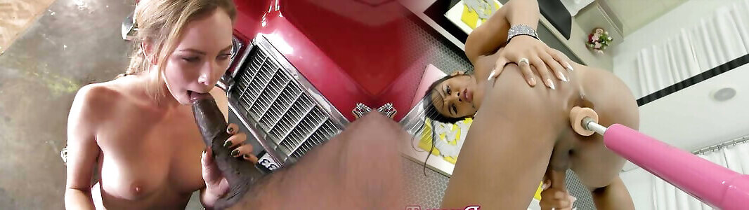 Lisa braces against the worker cleaner hose for a deep pounding fuck - BANG!