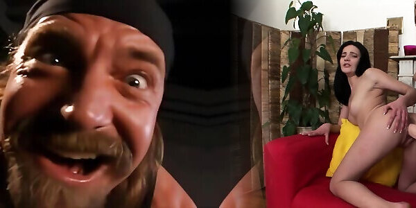 Tiny Brunette Teen Struggles to Fit Monster Cock In Her Small Mouth