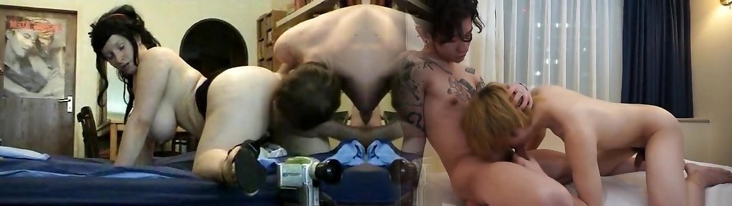 Halloween party threesome with blinded submissive gettin