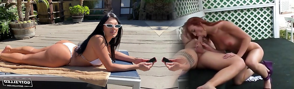 Super-cute Asian stunner messing with her smartphone during immediate sharking assault