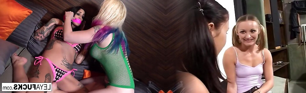 Grubby tatted stunners Janey Doe and Jessie Lee share a gigantic spunk-pump
